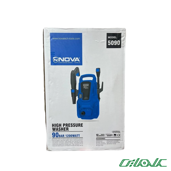 | اقلام همراه | نازل قابل تنظیم، رابط نازل، تفنگ، شلنگ فشار قوی 5 متری، فیلتر و کوپلینگ ورودی آب، مخزن مواد شوینده