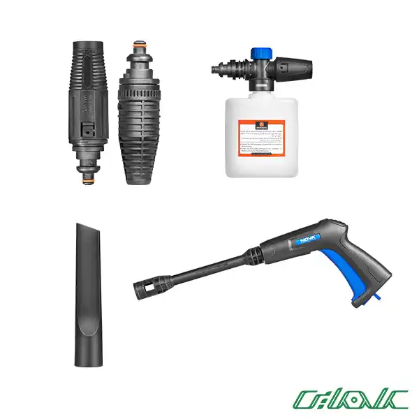 برای این کارواش خانگی از ۵ متر شیلنگ فشار قوی و از جنس pvc استفاده شده است تا در اثر فشار صدمه نبیند و طول عمر بیشتری داشته باشد.