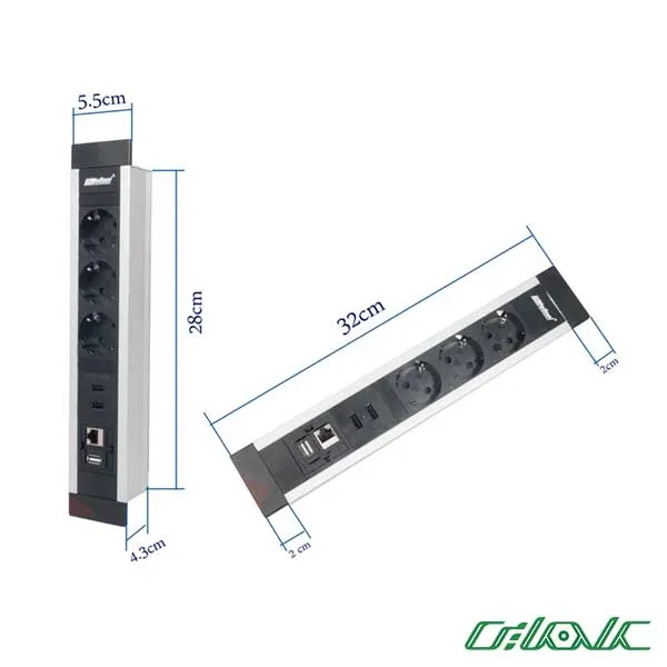 • تنوع درگاه‌ها: معمولاً این مدل شامل 2 یا 3 پریز برق 220 ولت (با محافظ کودک برای ایمنی بیشتر)، 1 یا 2 پورت USB برای شارژ دستگاه‌های الکترونیکی (که اغلب شامل پورت‌های Type-A و Type-C با قابلیت شارژ سریع می‌شوند)، و در برخی پیکربندی‌ها، یک پورت شبکه (LAN) و یا حتی یک پورت HDMI برای اتصال به نمایشگرها نیز هست. این تنوع، آن را به یک هاب کوچک برای اتصال طیف وسیعی از دستگاه‌ها تبدیل می‌کند.