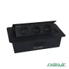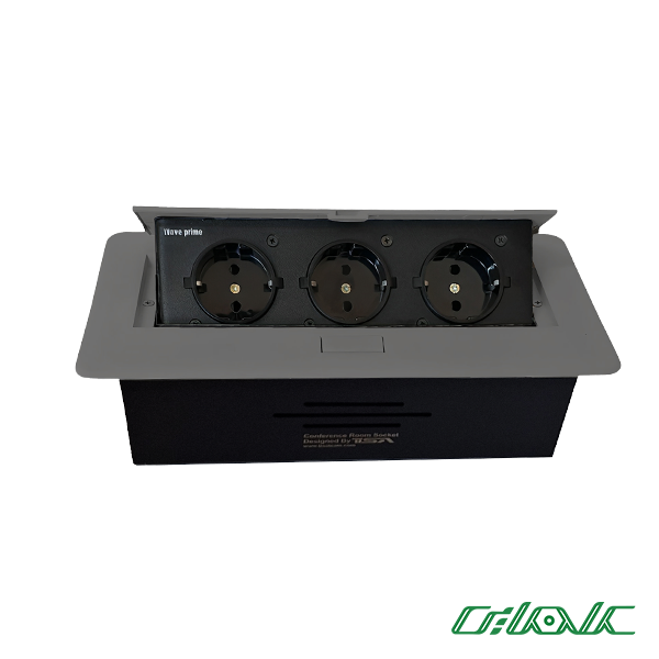 تمامی بدنه و درپوش این پریز از جنس فلز می باشند و تنها فضای داخلی سوکت ها از پلاستیک ساخته شده است تا در برابر برق گرفتگی عایق باشد و از نظر ایمنی مناسب باشد. درپوش این کار به صورت پدالی باز و بسته می شود تا در هنگامی که از آن استفاده نمی کنید، از خطرات جانبی جلوگیری نماید.